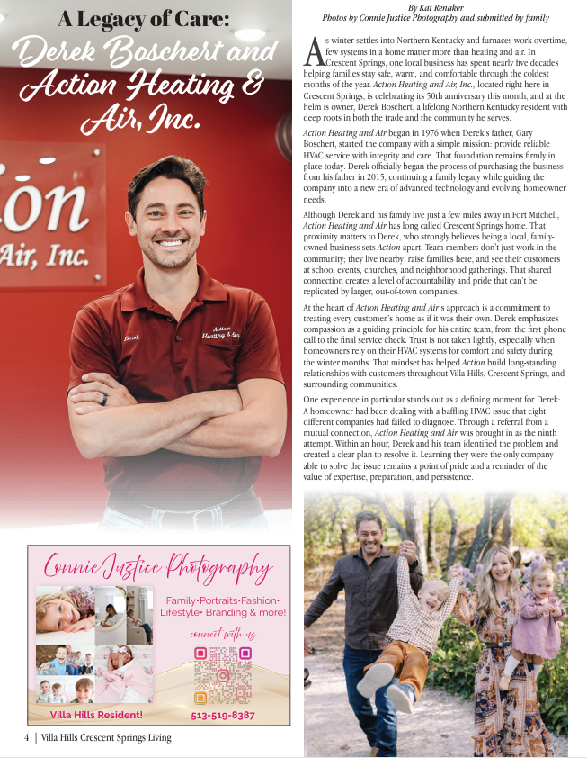 The friendly HVAC professionals at Action Heating and Air, Inc. proudly serve Kenton County, KY, and Northern Kentucky with trusted residential and light commercial heating, air conditioning, and ventilation services. As a family-owned and operated business since 1976, our team has been dedicated to delivering experienced installation, maintenance, and repair solutions that meet our customers’ needs and ensure their total comfort.